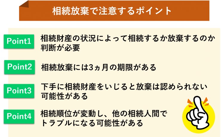 相続放棄をする上で注意するポイントがいくつかありますので、ご自身で手続きを行う際は注意が必要です。