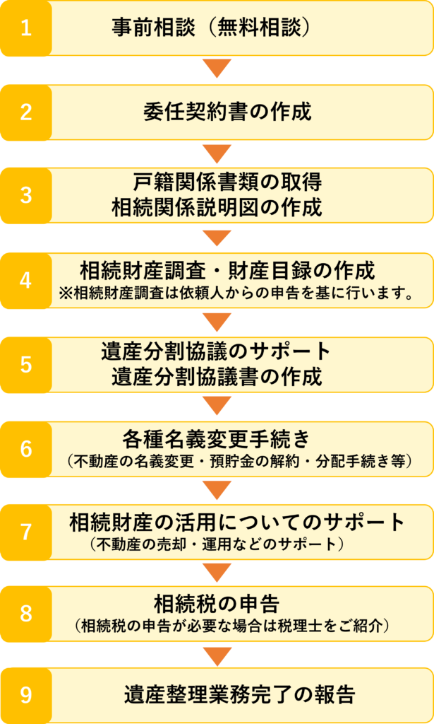京都 相続相談の窓口の相続手続き丸ごとサポートのサポート・流れ