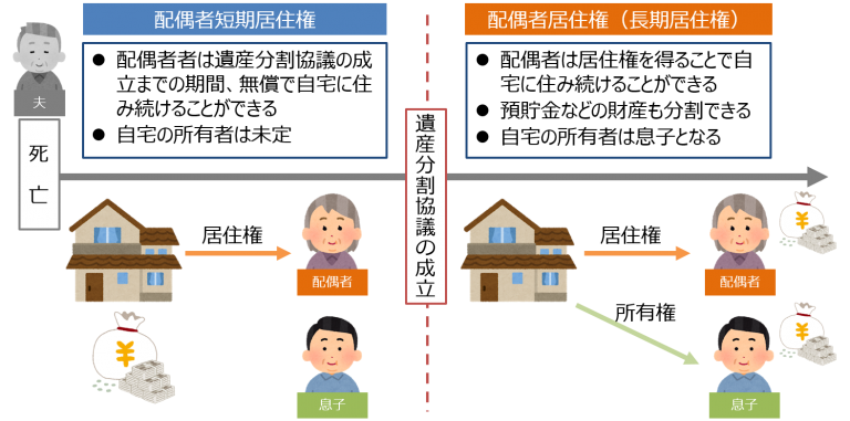 被相続人の配偶者のための権利、「配偶者短期居住権」と「配偶者居住権」が創設されました。