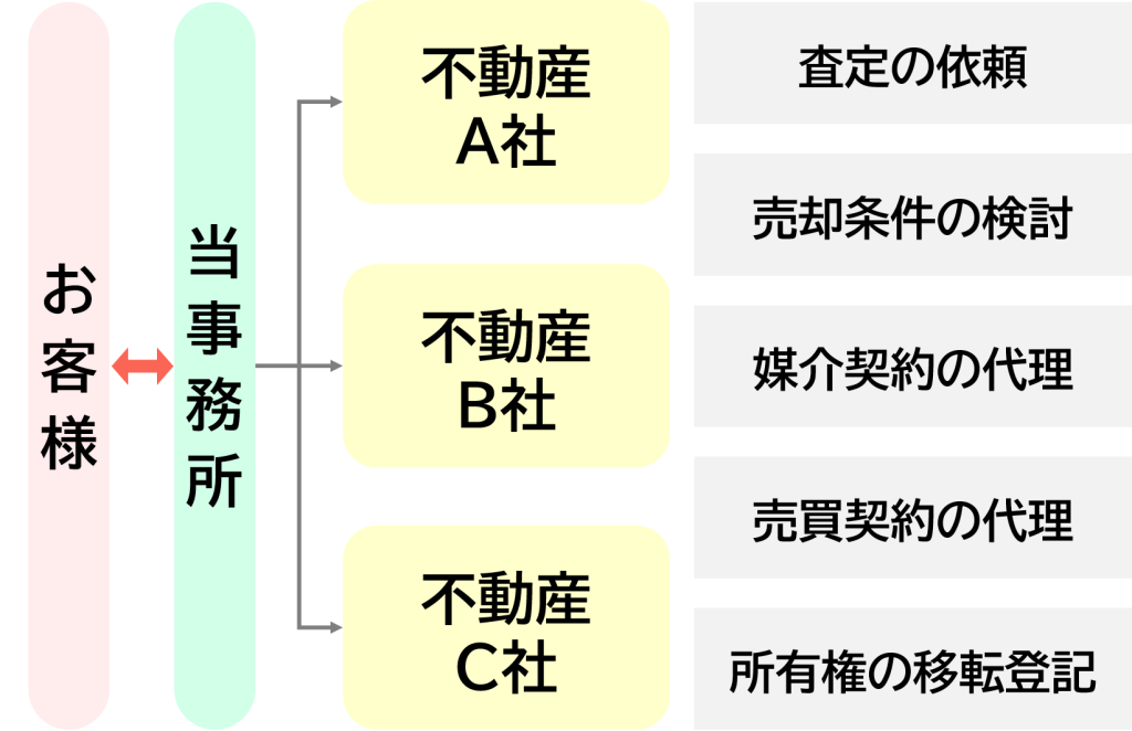 依頼する不動産会社をお客様と一緒に協議、決定したのち、売却に関する手続きを当事務所が代理で行います。